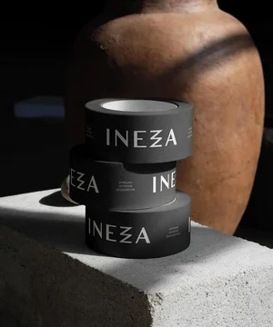 Het woordmerk is geïnspireerd op een traditioneel Bogolaans textielpatroon, met de zigzag als kenmerkend element. Deze gestileerde letter 'Z' diende als basis. Het op maat gemaakte logo weerspiegelt de kernwaarden van Ineza, waarbij een klassiek en verfijnd lettertype wordt gebruikt om de hoogwaardige objecten te symboliseren die het merk vertegenwoordigt.